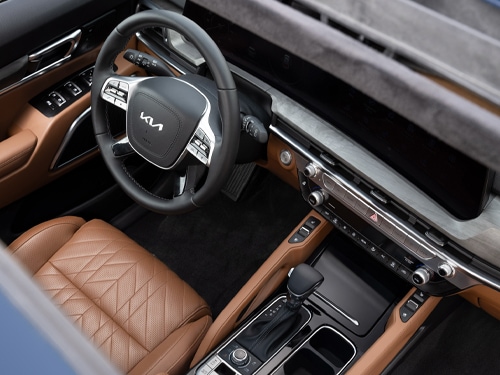 The 2025 Kia Telluride offers exceptional interior comfort, making it the ideal choice for families and adventurers in Ocala and Central Florida. With three spacious rows of seating, the Telluride accommodates up to eight passengers, providing ample legroom and headspace for everyone. Premium materials such as available Nappa leather seating and high-quality finishes elevate the cabin's sophistication, while heated and ventilated seats ensure comfort no matter the weather. The Telluride's quiet, insulated cabin is perfect for longer trips on Florida's highways, with plenty of space for your family to relax and enjoy the ride.