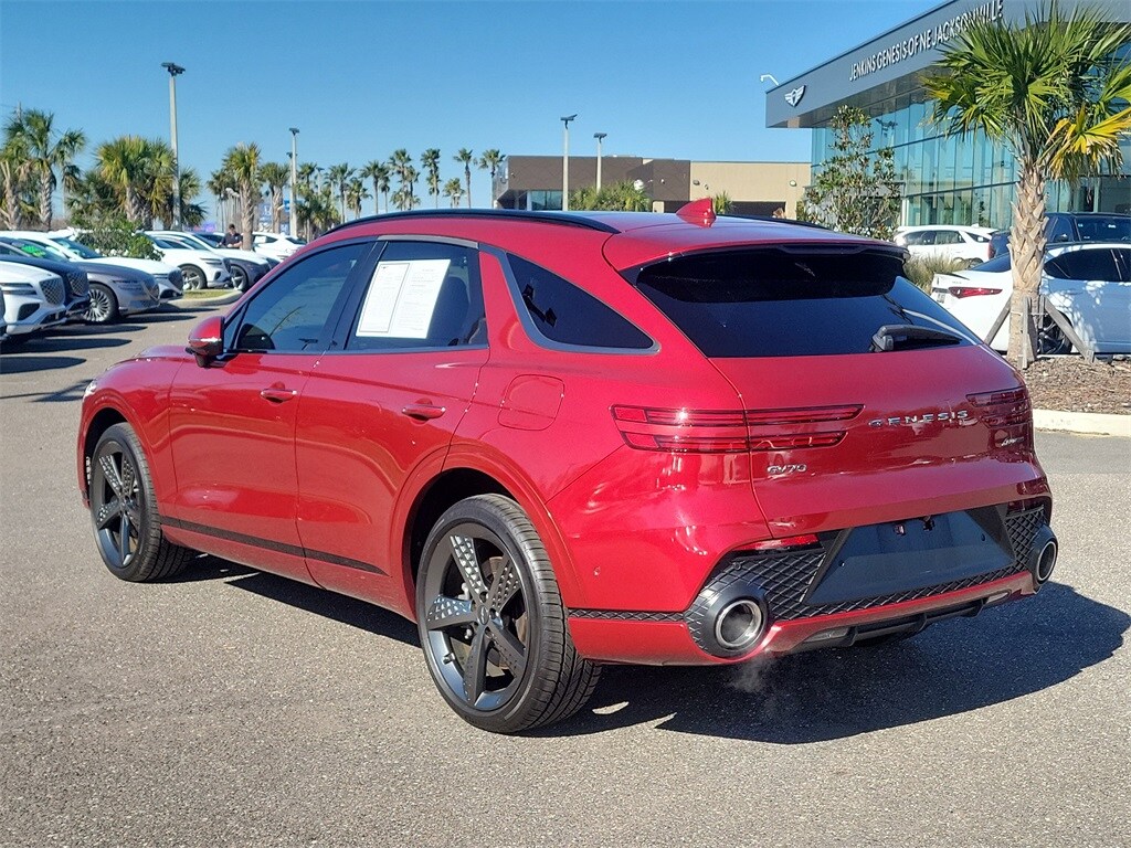 The price does not include tax, tag, license, an electronic filing fee of $449.00**, a private tag agency fee of $199.00**, and a predelivery service charge of $1199.00** **This charge represents costs and profit to the dealer for items such as inspecting, cleaning, and adjusting vehicles, as well as preparing documents related to the sale. * EPA-estimate metric: these are contingent on ideal conditions within a lab. Real-world situations such as carrying passengers or cargo, using climate control, driving style, and ambient temperatures can affect actual metrics. 19/25 City/Highway MPG Mauna Red 2022 Genesis GV70 3.5T Sport AWD 8-Speed Automatic 3.5L DOHC