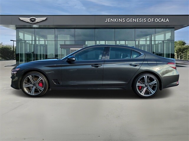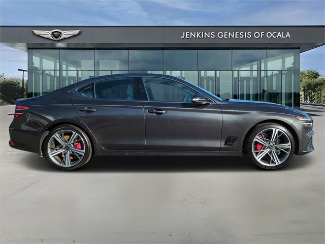 This vehicle comes equipped with Sport Prestige Package, Genesis Certified, 4-Wheel Disc Brakes, 6 Speakers, ABS brakes, Air Conditioning, Alloy wheels, AM/FM radio: SiriusXM, Android Auto & Apple CarPlay, Anti-whiplash front head restraints, Auto High-beam Headlights, Auto-dimming Rear-View mirror, Automatic temperature control, Brake assist, Bumpers: body-color, Delay-off headlights, Driver door bin, Driver vanity mirror, Dual front impact airbags, Dual front side impact airbags, Electronic Stability Control, Emergency communication system: Genesis Connected Services, Exterior Parking Camera Rear, First Aid Kit, Four wheel independent suspension, Front anti-roll bar, Front Bucket Seats, Front Center Armrest, Front dual zone A/C, Front reading lights, Fully automatic headlights, Garage door transmitter: HomeLink, Heated door mirrors, Heated front seats, Heated Multi-Adjustable Front Bucket Seats, Illuminated entry, Knee airbag, Leatherette Seating Surfaces, Low tire pressure warning, Mudguards, Navigation System, Occupant sensing airbag, Outside temperature display, Overhead airbag, Overhead console, Panic alarm, Passenger door bin, Passenger vanity mirror, Power door mirrors, Power driver seat, Power passenger seat, Power steering, Power windows, Radio: AM/FM/SiriusXM/HD Audio System, Rear anti-roll bar, Rear reading lights, Rear seat center armrest, Rear side impact airbag, Rear window defroster, Remote keyless entry, Reversible Cargo Tray, Security system, Speed control, Speed-Sensitive Wipers, Split folding rear seat, Steering wheel mounted audio controls, Tachometer, Telescoping steering wheel, Traction control, Trip computer, Turn signal indicator mirrors, Variably intermittent wipers, Wheel Locks, and Wheels: 19" x 8.0J Fr & 19" x 8.5J Rr Alloy .