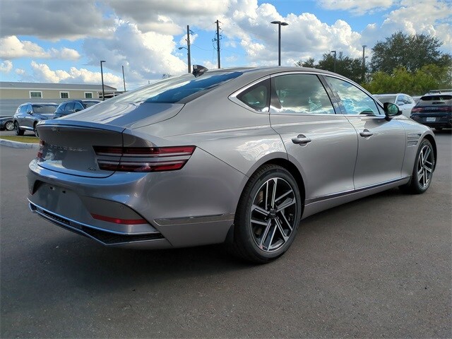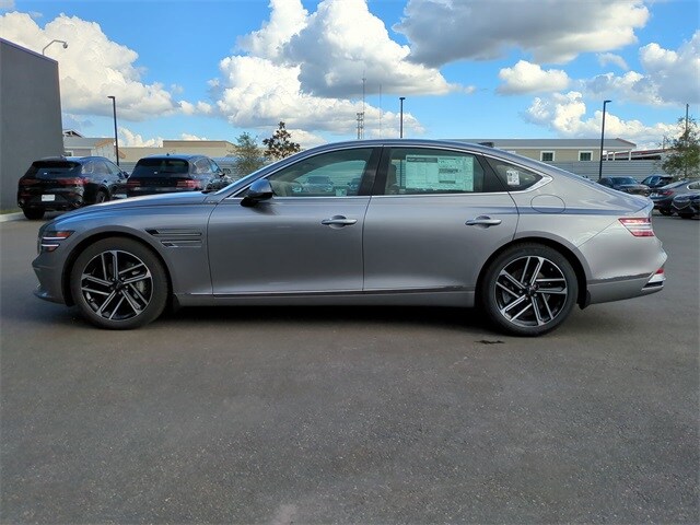 This vehicle comes equipped with Option Group 01, Genesis Certified, 18 Speakers, 4-Wheel Disc Brakes, ABS brakes, Air Conditioning, Alloy wheels, AM/FM radio: SiriusXM, Android Auto & Apple CarPlay, Anti-whiplash front head restraints, Auto High-beam Headlights, Auto tilt-away steering wheel, Auto-dimming door mirrors, Auto-dimming Rear-View mirror, Automatic temperature control, Bumpers: body-color, Compass, Delay-off headlights, Driver door bin, Driver vanity mirror, Dual front impact airbags, Dual front side impact airbags, Electronic Stability Control, Emergency communication system: Genesis Connected Services, Exterior Parking Camera Rear, First Aid Kit, Four wheel independent suspension, Front anti-roll bar, Front Bucket Seats, Front Center Armrest, Front dual zone A/C, Front reading lights, Fully automatic headlights, Garage door transmitter: HomeLink, Genuine wood console insert, Genuine wood dashboard insert, Genuine wood door panel insert, Heated door mirrors, Heated front seats, Heated rear seats, Heated steering wheel, Illuminated entry, Knee airbag, Leather steering wheel, Leatherette Seating Surfaces, Low tire pressure warning, Memory seat, Mudguards, Navigation System, Occupant sensing airbag, Outside temperature display, Overhead airbag, Overhead console, Panic alarm, Passenger door bin, Passenger vanity mirror, Power door mirrors, Power driver seat, Power moonroof, Power passenger seat, Power steering, Power windows, Radio data system, Rain sensing wipers, Rear air conditioning, Rear anti-roll bar, Rear reading lights, Rear seat center armrest, Rear side impact airbag, Rear window defroster, Remote keyless entry, Security system, Speed control, Speed-sensing steering, Speed-Sensitive Wipers, Steering wheel memory, Steering wheel mounted audio controls, Tachometer, Telescoping steering wheel, Tilt steering wheel, Traction control, Trip computer, Turn signal indicator mirrors, Variably intermittent wipers, and Ventilated front seats .
