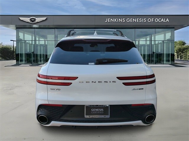 18/24 City/Highway MPG Certified. Uyuni White 2025 Genesis GV70 3.5T Sport AWD 8-Speed Automatic with SHIFTRONIC 3.5L DOHC