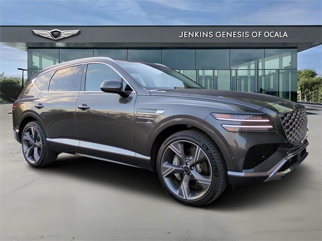 This vehicle comes equipped with Option Group 01, Genesis Certified, 18 Speakers, 4-Wheel Disc Brakes, ABS brakes, Adaptive suspension, Air Conditioning, Alloy wheels, AM/FM radio: SiriusXM, Anti-whiplash front head restraints, Auto High-beam Headlights, Auto tilt-away steering wheel, Auto-dimming door mirrors, Auto-dimming Rear-View mirror, Automatic temperature control, Brake assist, Bumpers: body-color, Cargo Net, Compass, Delay-off headlights, Driver door bin, Driver vanity mirror, Dual front impact airbags, Dual front side impact airbags, Electronic Stability Control, Emergency communication system: Genesis Connected Services, Exterior Parking Camera Rear, Four wheel independent suspension, Fragrance Cartridge, Front anti-roll bar, Front Bucket Seats, Front Center Armrest, Front dual zone A/C, Front reading lights, Fully automatic headlights, Garage door transmitter: HomeLink, Genuine wood console insert, Genuine wood dashboard insert, Genuine wood door panel insert, Heads-Up Display, Heated & Ventilated Front Bucket Seats, Heated door mirrors, Heated front seats, Heated rear seats, Heated steering wheel, Illuminated entry, Knee airbag, Leather Seating Surfaces, Leather steering wheel, Low tire pressure warning, Memory seat, Navigation System, Occupant sensing airbag, Outside temperature display, Overhead airbag, Overhead console, Panic alarm, Passenger door bin, Passenger vanity mirror, Power door mirrors, Power driver seat, Power Liftgate, Power moonroof, Power passenger seat, Power steering, Power windows, Radio data system, Radio: AM/FM/SiriusXM/HD Bang & Olufsen Sound Sys, Rain sensing wipers, Rear air conditioning, Rear anti-roll bar, Rear reading lights, Rear seat center armrest, Rear side impact airbag, Rear window defroster, Rear window wiper, Remote keyless entry, Security system, Speed control, Speed-sensing steering, Speed-Sensitive Wipers, Split folding rear seat, Spoiler, Steering wheel memory, Steering wheel mounted audio controls, Tachometer, Telescoping steering wheel, Tilt steering wheel, Traction control, Trip computer, Turn signal indicator mirrors, Variably intermittent wipers, Ventilated front seats, Wheel Locks, and Wheels: 22" x 9.5J Dark Gray Matte Alloy .