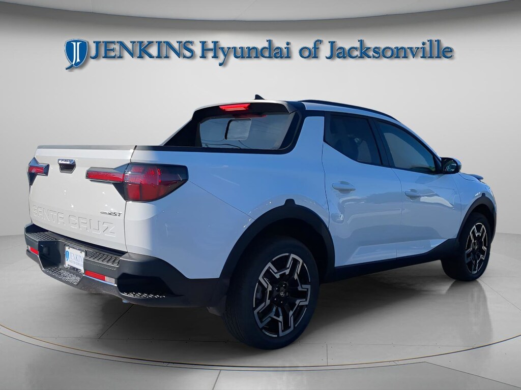 Clean CARFAX. This 2025 Hyundai Santa Cruz Limited in Atlas White features Option Group 01, 3.316 Axle Ratio, 4-Wheel Disc Brakes, 8 Speakers, ABS brakes, Air Conditioning, All Season Fitted Liners, Alloy wheels, AM/FM radio: SiriusXM, Apple CarPlay & Android Auto, Audio memory, Auto High-beam Headlights, Auto-dimming Rear-View mirror, Auto-leveling suspension, Automatic temperature control, Bed Divider, Brake assist, Bumpers: body-color, Compass, Delay-off headlights, Driver door bin, Driver vanity mirror, Dual front impact airbags, Dual front side impact airbags, Electronic Stability Control, Emergency communication system: Bluelink+, Exterior Parking Camera Rear, First Aid Kit, Four wheel independent suspension, Front anti-roll bar, Front Bucket Seats, Front Center Armrest, Front dual zone A/C, Front reading lights, Fully automatic headlights, Garage door transmitter: HomeLink, Heated & Ventilated Front Bucket Seats, Heated door mirrors, Heated front seats, Heated steering wheel, Illuminated entry, Leather Shift Knob, Leather steering wheel, Leather-Trimmed Seat Trim, Low tire pressure warning, Memory seat, Navigation System, Occupant sensing airbag, Outside temperature display, Overhead airbag, Overhead console, Panic alarm, Passenger door bin, Passenger vanity mirror, Power door mirrors, Power driver seat, Power moonroof, Power passenger seat, Power steering, Power windows, Radio data system, Radio: AM/FM/HD w/Bose Premium Audio System, Rain sensing wipers, Rear anti-roll bar, Rear reading lights, Rear seat center armrest, Rear side impact airbag, Rear step bumper, Rear window defroster, Remote keyless entry, Security system, Speed control, Speed-sensing steering, Split folding rear seat, Spoiler, Steering wheel mounted audio controls, Tachometer, Telescoping steering wheel, Tilt steering wheel, Traction control, Trip computer, Turn signal indicator mirrors, Variably intermittent wipers, Ventilated front seats, and Wheels: 20" x 7.5J Alloy . Visit our showroom 24/7 at Jenkinshyundaiofjacksonville or call 904-420-3100. AWD
