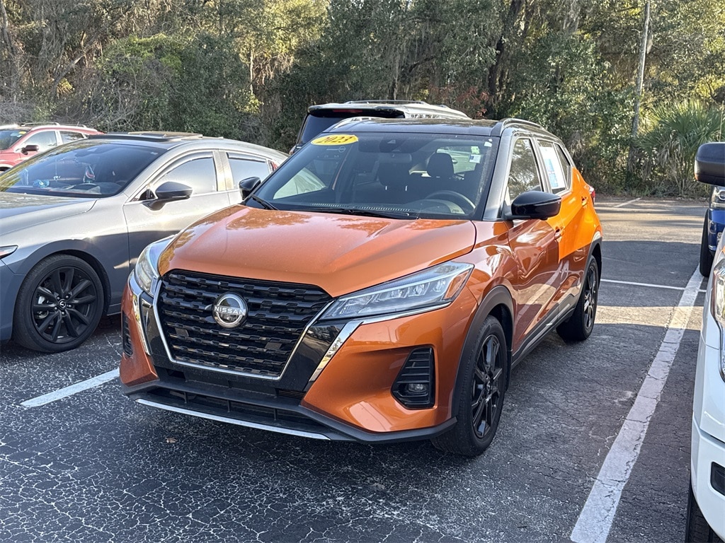Certified. Monarch Orange Metallic/Super Black Odometer is 15676 miles below market average! 31/36 City/Highway MPG 2023 Nissan Kicks SR FWD CVT with Xtronic 1.6L 4-Cylinder DOHC 16V Jenkins has been doing business for over 50 years and we appreciate your business! Our used cars undergo an extensive Detail and Reconditioning Process, and are thoroughly inspected to meet the criteria for our exclusive warranty. Buy with confidence at Jenkins Nissan of Homosassa! We spend an average of $2779 in Detail and Reconditioning on every used car. The Reconditioning and Maintenance Repair History is Available Upon Request. We don't just inspect, we fix :)