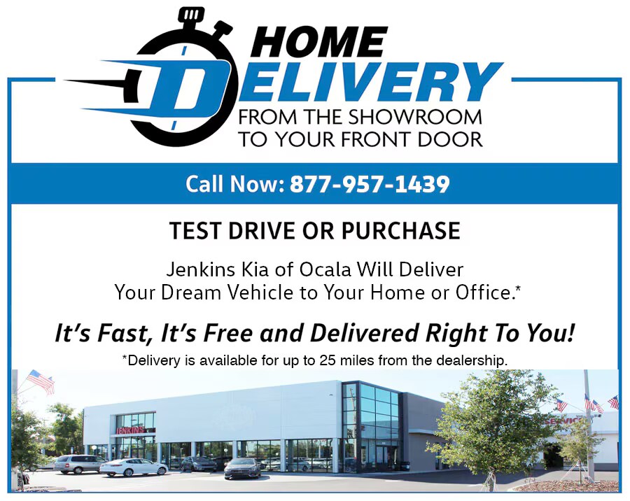 At Jenkins Kia of Ocala, we want to make the process of purchasing or leasing a new vehicle as convenient as possible. That's why when your new vehicle is ready, we'll bring it to you. Our dealership offers home delivery of our new Kia vehicles right to your doorstep, so you can enjoy your new ride without having to leave your home to come get it!