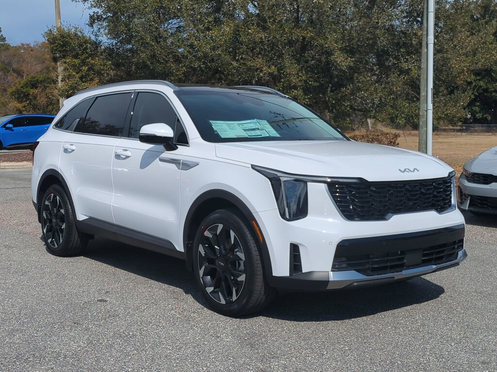 Delivers 29 Highway MPG and 20 City MPG! This Kia Sorento boasts a Intercooled Turbo Regular Unleaded I-4 2.5 L/152 engine powering this Automatic transmission. OPTION GROUP 015 -inc: EX Premium Package, Full-Length One-Touch Panoroof w/Sliding Sunshade, LED Interior Lighting, 2nd Row Captain's Chairs, 2:2:2 configuration, Radio: AM/FM Bose Premium Audio System, 12.3" ccNC touchscreen, navigation, HD Radio, Bluetooth w/audio remote control, wireless Android Auto and wireless Apple CarPlay, voice recognition, Sirius XM, modem, Kia Connect, Wi-Fi hot spot, Over-The-Air Updates (OTA), 12 speakers including tweeters, amp, subwoofer and USB, Wireless Phone Connectivity, Wheels: 20" Machine-Finished Gloss Black Alloy.