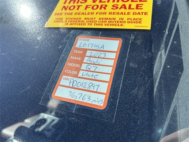 The price does not include tax, tag, license, an electronic filing fee of $449.00**, a private tag agency fee of $199.00**, and a predelivery service charge of $1199.00** **This charge represents costs and profit to the dealer for items such as inspecting, cleaning, and adjusting vehicles, as well as preparing documents related to the sale.* EPA-estimate metric: these are contingent on ideal conditions within a lab. Real-world situations such as carrying passengers or cargo, using climate control, driving style, and ambient temperatures can affect actual metrics. 19/25 City/Highway MPG 2023 Audi Q7 45 Premium quattro quattro 8-Speed Automatic with Tiptronic 2.0L 4-Cylinder TFSI