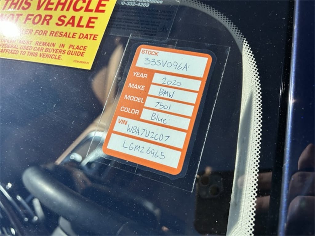 The price does not include tax, tag, license, an electronic filing fee of $449.00**, a private tag agency fee of $199.00**, and a predelivery service charge of $1199.00** **This charge represents costs and profit to the dealer for items such as inspecting, cleaning, and adjusting vehicles, as well as preparing documents related to the sale.* EPA-estimate metric: these are contingent on ideal conditions within a lab. Real-world situations such as carrying passengers or cargo, using climate control, driving style, and ambient temperatures can affect actual metrics. 17/25 City/Highway MPG AWD, Cognac Leather. Imperial Blue Metallic 2020 BMW 7 Series 750i xDrive AWD 8-Speed Automatic 4.4L V8 32V Twin Turbocharged