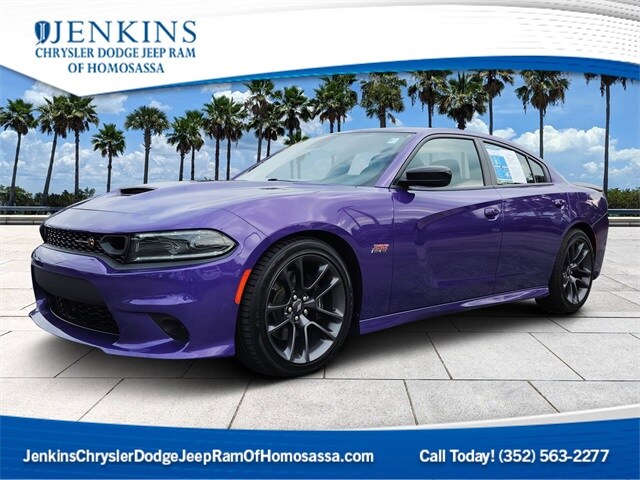 DECEMBER SAVINGS, END OF YEAR DEALS, GET THEM BEFORE THEY ARE GONE! The price does not include tax, tag, license, an electronic filing fee of $449.00**, a private tag agency fee of $199.00**, and a predelivery service charge of $1199.00** **This charge represents costs and profit to the dealer for items such as inspecting, cleaning, and adjusting vehicles, as well as preparing documents related to the sale. * EPA-estimate metric: these are contingent on ideal conditions within a lab. Real-world situations such as carrying passengers or cargo, using climate control, driving style, and ambient temperatures can affect actual metrics. 15/24 City/Highway MPG NAVIGATION SYSTEM, ALLOY WHEELS, BACKUP CAMERA, BLUETOOTH, CLIMATE PACKAGE, HEAT PACKAGE, MEMORY PACKAGE, POWER PACKAGE, REMOTE START, TECHNOLOGY PACKAGE, Black Cloth. CARFAX One-Owner. Recent Arrival! Odometer is 17373 miles below market average! Certified. Plum Crazy Pearlcoat 2023 Dodge Charger R/T Scat Pack SRT HEMI 6.4L V8 RWD 8-Speed Automatic SRT HEMI 6.4L V8 MDS