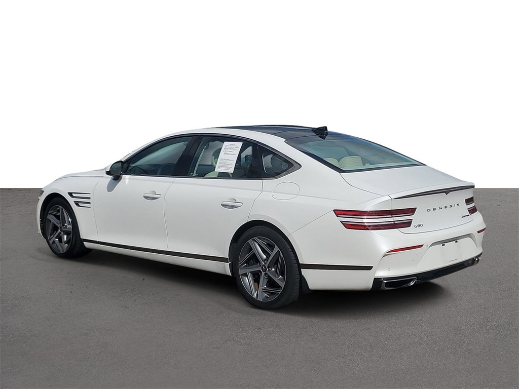 The price does not include tax, tag, license, an electronic filing fee of $449.00**, a private tag agency fee of $199.00**, and a predelivery service charge of $1199.00** **This charge represents costs and profit to the dealer for items such as inspecting, cleaning, and adjusting vehicles, as well as preparing documents related to the sale. * EPA-estimate metric: these are contingent on ideal conditions within a lab. Real-world situations such as carrying passengers or cargo, using climate control, driving style, and ambient temperatures can affect actual metrics. 16/25 City/Highway MPG Verbier White 2023 Genesis G80 3.5T AWD 8-Speed Automatic 3.5L V6 PDI Turbocharged DOHC 24V LEV3-ULEV70 375hp