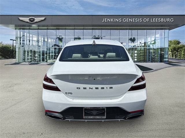 The price does not include tax, tag, license, an electronic filing fee of $449.00**, a private tag agency fee of $199.00**, and a predelivery service charge of $1199.00** **This charge represents costs and profit to the dealer for items such as inspecting, cleaning, and adjusting vehicles, as well as preparing documents related to the sale.* EPA-estimate metric: these are contingent on ideal conditions within a lab. Real-world situations such as carrying passengers or cargo, using climate control, driving style, and ambient temperatures can affect actual metrics. 21/29 City/Highway MPG Alta White 2025 Genesis G70 2.5T RWD 8-Speed Automatic I4