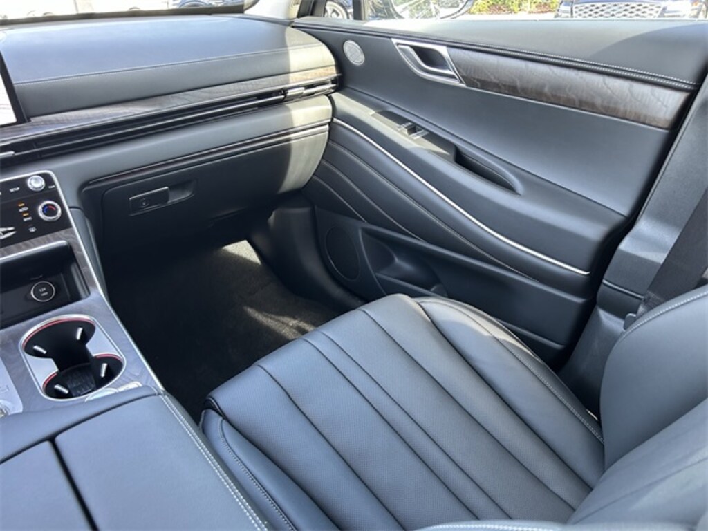 This vehicle comes equipped with Option Group 01, 12 Speakers, 4-Wheel Disc Brakes, ABS brakes, Air Conditioning, Alloy wheels, AM/FM radio: SiriusXM, Anti-whiplash front head restraints, Auto High-beam Headlights, Auto tilt-away steering wheel, Auto-dimming door mirrors, Auto-dimming Rear-View mirror, Auto-leveling suspension, Automatic temperature control, Brake assist, Bumpers: body-color, Compass, Delay-off headlights, Driver door bin, Driver vanity mirror, Dual front impact airbags, Dual front side impact airbags, Electronic Stability Control, Emergency communication system: Genesis Connected Services, Exterior Parking Camera Rear, Four wheel independent suspension, Front anti-roll bar, Front Bucket Seats, Front Center Armrest, Front dual zone A/C, Front reading lights, Fully automatic headlights, Garage door transmitter: HomeLink, Genuine wood console insert, Genuine wood dashboard insert, Genuine wood door panel insert, Heated door mirrors, Heated Front Bucket Seats, Heated front seats, Heated steering wheel, Illuminated entry, Knee airbag, Leather steering wheel, Leatherette Seating Surfaces, Low tire pressure warning, Memory seat, Navigation System, Occupant sensing airbag, Outside temperature display, Overhead airbag, Overhead console, Panic alarm, Passenger door bin, Passenger vanity mirror, Power door mirrors, Power driver seat, Power Liftgate, Power moonroof, Power passenger seat, Power steering, Power windows, Radio data system, Radio: AM/FM/SiriusXM/HD, Rain sensing wipers, Rear air conditioning, Rear anti-roll bar, Rear reading lights, Rear seat center armrest, Rear side impact airbag, Rear window defroster, Rear window wiper, Remote keyless entry, Security system, Speed control, Speed-sensing steering, Speed-Sensitive Wipers, Split folding rear seat, Spoiler, Steering wheel memory, Steering wheel mounted audio controls, Tachometer, Telescoping steering wheel, Tilt steering wheel, Traction control, Trip computer, Turn signal indicator mirrors, Variably intermittent wipers, and Wheels: 20" x 8.5J Dark Gray Matte Alloy . Recent Arrival! Odometer is 9262 miles below market average!