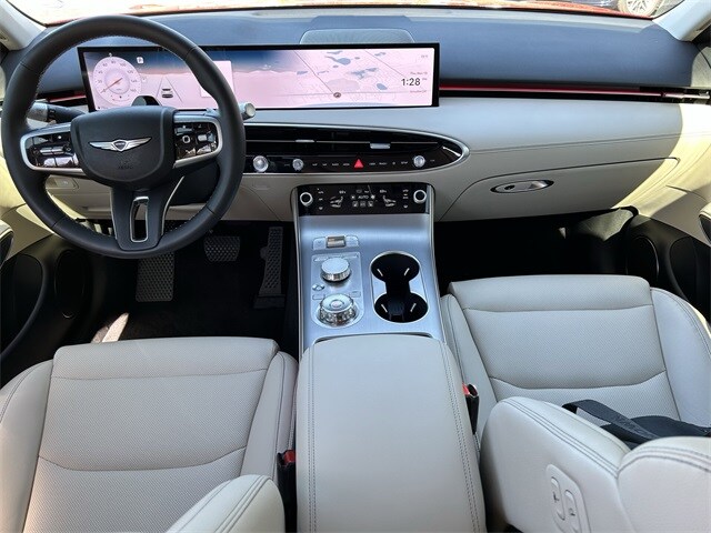 This vehicle comes equipped with Option Group 01, 4-Wheel Disc Brakes, 9 Speakers, ABS brakes, Air Conditioning, Alloy wheels, AM/FM radio: SiriusXM, Android Auto & Apple CarPlay, Anti-whiplash front head restraints, Auto High-beam Headlights, Auto-dimming door mirrors, Auto-dimming Rear-View mirror, Automatic temperature control, Brake assist, Bumpers: body-color, Cargo Cover, Cargo Net, Cargo Tray, Delay-off headlights, Driver door bin, Driver vanity mirror, Dual front impact airbags, Dual front side impact airbags, Electronic Stability Control, Emergency communication system: Genesis Connected Services, Exterior Parking Camera Rear, Four wheel independent suspension, Front anti-roll bar, Front Bucket Seats, Front Center Armrest w/Storage, Front dual zone A/C, Front reading lights, Fully automatic headlights, Garage door transmitter: HomeLink, Heated door mirrors, Heated Front Bucket Seats, Heated front seats, Illuminated entry, Knee airbag, Leather steering wheel, Leatherette Seating Surfaces, Low tire pressure warning, Memory seat, Navigation System, Occupant sensing airbag, Outside temperature display, Overhead airbag, Overhead console, Panic alarm, Passenger door bin, Passenger vanity mirror, Power door mirrors, Power driver seat, Power Liftgate, Power moonroof, Power passenger seat, Power steering, Power windows, Radio: 14.5" Navigation System with AM/FM/HD, Rain sensing wipers, Rear anti-roll bar, Rear reading lights, Rear seat center armrest, Rear window defroster, Rear window wiper, Remote keyless entry, Security system, Speed control, Speed-sensing steering, Speed-Sensitive Wipers, Split folding rear seat, Spoiler, Steering wheel memory, Steering wheel mounted audio controls, Tachometer, Telescoping steering wheel, Tilt steering wheel, Traction control, Trip computer, Turn signal indicator mirrors, Variably intermittent wipers, Wheel Locks, and Wheels: 19" Light Hyper Silver Alloy . 22/28 City/Highway MPG