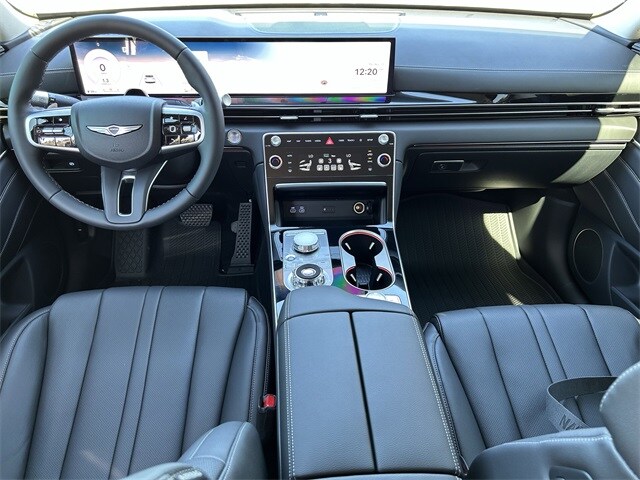 This vehicle comes equipped with Option Group 01, 12 Speakers, 4-Wheel Disc Brakes, ABS brakes, Air Conditioning, Alloy wheels, AM/FM radio: SiriusXM, Anti-whiplash front head restraints, Auto High-beam Headlights, Auto tilt-away steering wheel, Auto-dimming door mirrors, Auto-dimming Rear-View mirror, Auto-leveling suspension, Automatic temperature control, Brake assist, Bumpers: body-color, Cargo Mat, Cargo Net, Compass, Delay-off headlights, Driver door bin, Driver vanity mirror, Dual front impact airbags, Dual front side impact airbags, Electronic Stability Control, Emergency communication system: Genesis Connected Services, Exterior Parking Camera Rear, First Aid Kit, Four wheel independent suspension, Front and Rear Mudguards, Front anti-roll bar, Front Bucket Seats, Front Center Armrest, Front dual zone A/C, Front reading lights, Fully automatic headlights, Garage door transmitter: HomeLink, Heated door mirrors, Heated Front Bucket Seats, Heated front seats, Illuminated entry, Knee airbag, Leather steering wheel, Leatherette Seating Surfaces, Low tire pressure warning, Memory seat, Navigation System, Occupant sensing airbag, Outside temperature display, Overhead airbag, Overhead console, Panic alarm, Passenger door bin, Passenger vanity mirror, Power door mirrors, Power driver seat, Power Liftgate, Power passenger seat, Power steering, Power windows, Radio data system, Radio: AM/FM/HD, Rain sensing wipers, Rear air conditioning, Rear anti-roll bar, Rear reading lights, Rear seat center armrest, Rear side impact airbag, Rear window defroster, Rear window wiper, Remote keyless entry, Security system, Speed control, Speed-sensing steering, Speed-Sensitive Wipers, Split folding rear seat, Spoiler, Steering wheel memory, Steering wheel mounted audio controls, Tachometer, Telescoping steering wheel, Tilt steering wheel, Traction control, Trip computer, Turn signal indicator mirrors, Variably intermittent wipers, and Wheels: 19" x 8.5J Medium Metallic Gray Alloy . Recent Arrival!