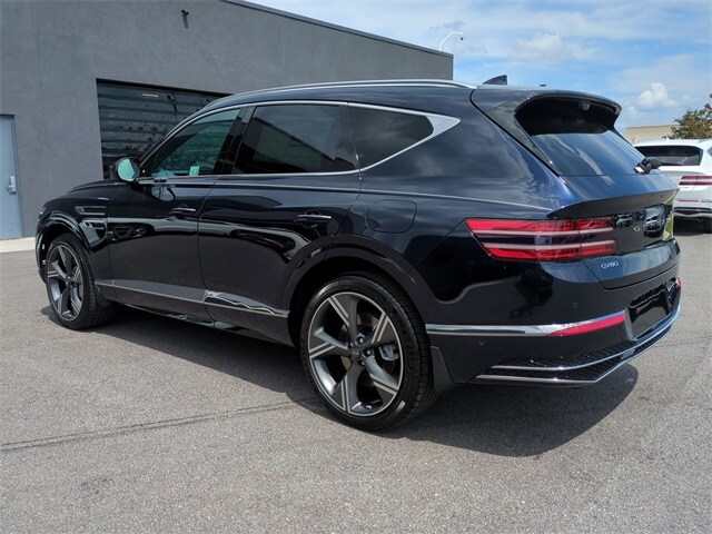 This vehicle comes equipped with Option Group 01, 18 Speakers, 3rd row seats: split-bench, 4-Wheel Disc Brakes, ABS brakes, Adaptive suspension, Air Conditioning, Alloy wheels, AM/FM radio: SiriusXM, Anti-whiplash front head restraints, Auto High-beam Headlights, Auto tilt-away steering wheel, Auto-dimming door mirrors, Auto-dimming Rear-View mirror, Automatic temperature control, Brake assist, Bumpers: body-color, Cargo Net, Compass, Delay-off headlights, Driver door bin, Driver vanity mirror, Dual front impact airbags, Dual front side impact airbags, Electronic Stability Control, Emergency communication system: Genesis Connected Services, Exterior Parking Camera Rear, First Aid Kit, Four wheel independent suspension, Fragrance Cartridge, Front anti-roll bar, Front Bucket Seats, Front Center Armrest, Front dual zone A/C, Front reading lights, Fully automatic headlights, Garage door transmitter: HomeLink, Genuine wood console insert, Genuine wood dashboard insert, Genuine wood door panel insert, Heads-Up Display, Heated and Ventilated Front Bucket Seats, Heated door mirrors, Heated front seats, Heated rear seats, Heated steering wheel, Illuminated entry, Knee airbag, Leather steering wheel, Low tire pressure warning, Memory seat, Nappa Leather Seating Surfaces, Navigation System, NFC Key Card, Occupant sensing airbag, Outside temperature display, Overhead airbag, Overhead console, Panic alarm, Passenger door bin, Passenger vanity mirror, Power door mirrors, Power driver seat, Power Liftgate, Power moonroof, Power passenger seat, Power steering, Power windows, Radio data system, Radio: AM/FM/HD Bose Premium Sound System, Rain sensing wipers, Rear air conditioning, Rear anti-roll bar, Rear dual zone A/C, Rear reading lights, Rear seat center armrest, Rear side impact airbag, Rear window defroster, Rear window wiper, Reclining 3rd row seat, Remote keyless entry, Security system, Speed control, Speed-sensing steering, Speed-Sensitive Wipers, Split folding rear seat, Spoiler, Steering wheel memory, Steering wheel mounted audio controls, Tachometer, Telescoping steering wheel, Tilt steering wheel, Traction control, Trip computer, Turn signal indicator mirrors, Variably intermittent wipers, Ventilated front seats, Ventilated rear seats, and Wheels: 22" x 9.5J Dark Gray Matte Alloy .