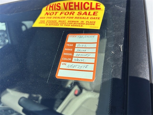 The price does not include tax, tag, license, an electronic filing fee of $449.00**, a private tag agency fee of $199.00**, and a predelivery service charge of $1199.00** **This charge represents costs and profit to the dealer for items such as inspecting, cleaning, and adjusting vehicles, as well as preparing documents related to the sale.* EPA-estimate metric: these are contingent on ideal conditions within a lab. Real-world situations such as carrying passengers or cargo, using climate control, driving style, and ambient temperatures can affect actual metrics. 19/28 City/Highway MPG 2022 Honda Odyssey EX-L FWD 10-Speed Automatic 3.5L V6 SOHC i-VTEC 24V