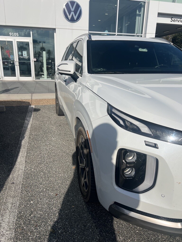 The price does not include tax, tag, license, an electronic filing fee of $449.00**, a private tag agency fee of $199.00**, and a predelivery service charge of $1199.00** **This charge represents costs and profit to the dealer for items such as inspecting, cleaning, and adjusting vehicles, as well as preparing documents related to the sale. * EPA-estimate metric: these are contingent on ideal conditions within a lab. Real-world situations such as carrying passengers or cargo, using climate control, driving style, and ambient temperatures can affect actual metrics. 19/26 City/Highway MPG Palisade Calligraphy, 4D Sport Utility, V6, 8-Speed Automatic with SHIFTRONIC, Hyper White, Auto High-beam Headlights, Automatic temperature control, Brake assist, Delay-off headlights, Electronic Stability Control, Emergency communication system: Blue Link Connected Car Service (3-year complimentary subscription), Front dual zone A/C, Fully automatic headlights, Garage door transmitter: HomeLink, Heads-Up Display, Heated rear seats, Heated steering wheel, Illuminated entry, Memory seat, Outside temperature display, Panic alarm, Power Liftgate, Premium Nappa Leather Seat Trim, Rain sensing wipers, Rear air conditioning, Rear window wiper, Reclining 3rd row seat, Remote keyless entry, Security system, Ventilated front seats, Ventilated rear seats, Wheels: 20" x 7.5J Calligraphy Exclusive Alloy.
