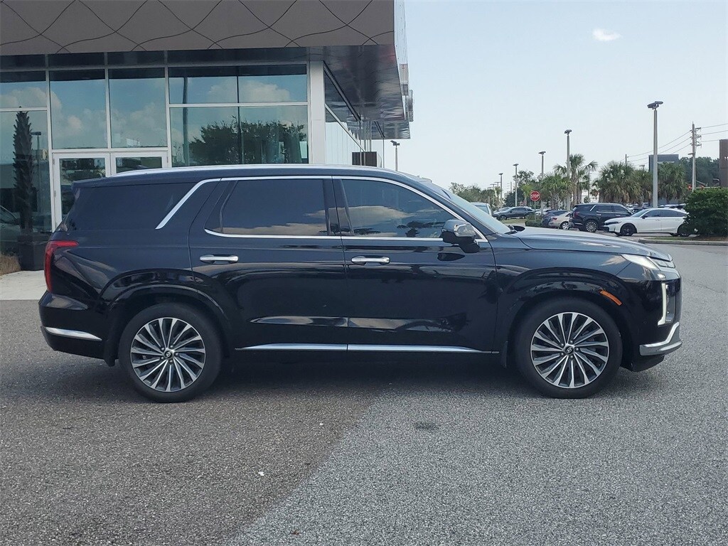 This vehicle comes equipped with Option Group 01, 12 Speakers, 3.510 Axle Ratio, 3rd row seats: split-bench, 4-Wheel Disc Brakes, ABS brakes, Air Conditioning, Alloy wheels, AM/FM radio: SiriusXM, Apple CarPlay & Android Auto, Auto High-beam Headlights, Auto-dimming door mirrors, Auto-dimming Rear-View mirror, Auto-leveling suspension, Automatic temperature control, Brake assist, Bumpers: body-color, Cargo Cover/Screen, Cargo Net, Cargo Tray, Carpeted Floor Mats, Compass, Delay-off headlights, Driver door bin, Driver vanity mirror, Dual front impact airbags, Dual front side impact airbags, Electronic Stability Control, Emergency communication system: Blue Link Connected Car Service (3-year complimentary subscription), Exterior Parking Camera Rear, Four wheel independent suspension, Front anti-roll bar, Front Bucket Seats, Front Center Armrest, Front dual zone A/C, Front reading lights, Fully automatic headlights, Garage door transmitter: HomeLink, harman/kardon® Speakers, Heads-Up Display, Heated & Ventilated Front Bucket Seats, Heated door mirrors, Heated front seats, Heated rear seats, Heated steering wheel, Illuminated entry, Knee airbag, Low tire pressure warning, Memory seat, Navigation System, Occupant sensing airbag, Outside temperature display, Overhead airbag, Overhead console, Panic alarm, Passenger door bin, Passenger vanity mirror, Power door mirrors, Power driver seat, Power Liftgate, Power moonroof, Power passenger seat, Power steering, Power windows, Premium Nappa Leather Seat Trim, Radio data system, Radio: AM/FM/MP3 Premium Audio System, Rain sensing wipers, Rear air conditioning, Rear anti-roll bar, Rear audio controls, Rear Bumper Applique, Rear reading lights, Rear side impact airbag, Rear window defroster, Rear window wiper, Reclining 3rd row seat, Remote keyless entry, Security system, Speed control, Speed-sensing steering, Splash Trim, Split folding rear seat, Spoiler, Steering wheel mounted audio controls, Tachometer, Telescoping steering wheel, Tilt steering wheel, Traction control, Trip computer, Turn signal indicator mirrors, Variably intermittent wipers, Ventilated front seats, Ventilated rear seats, and Wheels: 20" x 7.5J Calligraphy Exclusive Alloy .