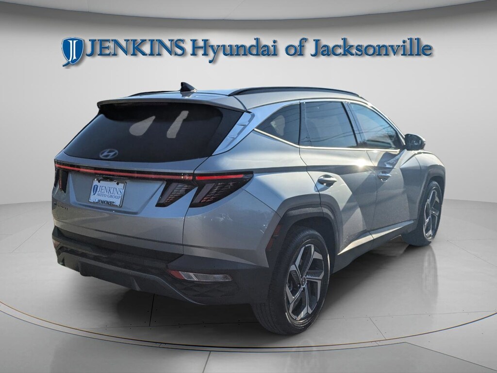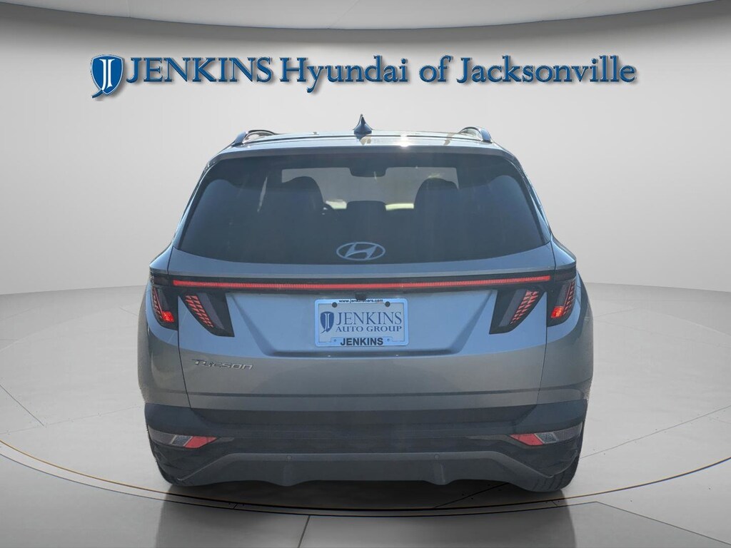 The price does not include tax, tag, license, an electronic filing fee of $449.00**, a private tag agency fee of $199.00**, and a predelivery service charge of $1199.00** **This charge represents costs and profit to the dealer for items such as inspecting, cleaning, and adjusting vehicles, as well as preparing documents related to the sale. * EPA-estimate metric: these are contingent on ideal conditions within a lab. Real-world situations such as carrying passengers or cargo, using climate control, driving style, and ambient temperatures can affect actual metrics. 25/32 City/Highway MPG CARFAX One-Owner. This 2024 Hyundai Tucson Limited in Shimmering Silver features Option Group 01, 3.648 Axle Ratio, 4-Wheel Disc Brakes, 8 Speakers, ABS brakes, Air Conditioning, Alloy wheels, AM/FM radio: SiriusXM, Apple CarPlay & Android Auto, Auto High-beam Headlights, Auto-dimming Rear-View mirror, Automatic temperature control, Brake assist, Bumpers: body-color, Delay-off headlights, Driver door bin, Driver vanity mirror, Dual front impact airbags, Dual front side impact airbags, Electronic Stability Control, Emergency communication system: Blue Link Connected Car Service (3-year complimentary subscription), Exterior Parking Camera Rear, Four wheel independent suspension, Front anti-roll bar, Front Bucket Seats, Front Center Armrest, Front dual zone A/C, Front reading lights, Fully automatic headlights, Garage door transmitter: HomeLink, Heated & Ventilated Front Bucket Seats, Heated door mirrors, Heated front seats, Heated rear seats, Heated steering wheel, Illuminated entry, Leather Seat Trim, Low tire pressure warning, Memory seat, Navigation System, Occupant sensing airbag, Outside temperature display, Overhead airbag, Overhead console, Panic alarm, Passenger door bin, Passenger vanity mirror, Power door mirrors, Power driver seat, Power Liftgate, Power moonroof, Power passenger seat, Power steering, Power windows, Radio data system, Radio: Bose Premium w/AM/FM/HD Audio System, Rain sensing wipers, Rear anti-roll bar, Rear reading lights, Rear seat center armrest, Rear side impact airbag, Rear window defroster, Rear window wiper, Remote keyless entry, Roof rack: rails only, Security system, Speed control, Split folding rear seat, Spoiler, Steering wheel mounted audio controls, Tachometer, Telescoping steering wheel, Tilt steering wheel, Traction control, Trip computer, Turn signal indicator mirrors, Variably intermittent wipers, Ventilated front seats, and Wheels: 19" x 7.5J" Machine-Face Finish Alloy . Visit our showroom 24/7 at Jenkinshyundaiofjacksonville or call 904-420-3100. FWD