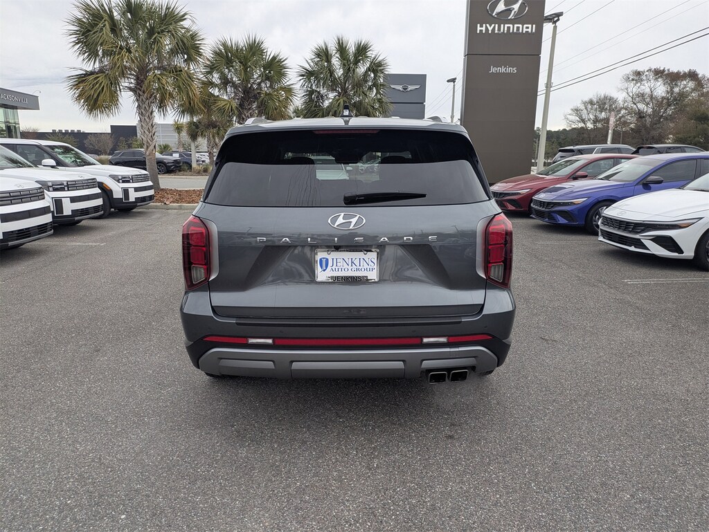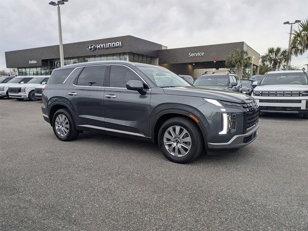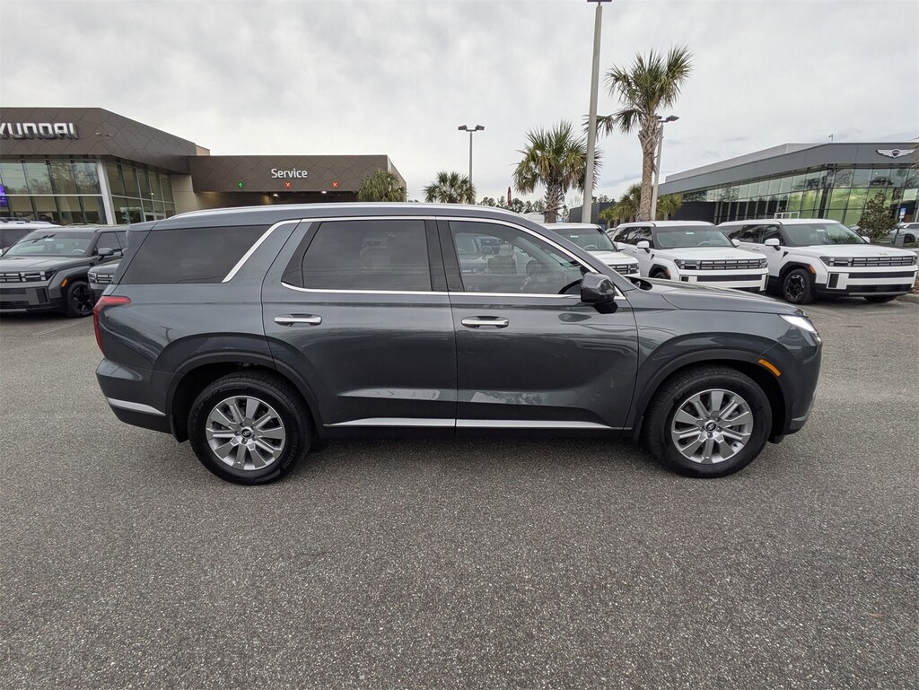 CARFAX One-Owner. This 2025 Hyundai Palisade SEL in Steel Graphite features Option Group 01, 3rd row seats: split-bench, 4-Wheel Disc Brakes, 6 Speakers, ABS brakes, Air Conditioning, All-Season Fitted Liners, Alloy wheels, AM/FM radio: SiriusXM, Apple CarPlay & Android Auto, Auto High-beam Headlights, Auto-dimming Rear-View mirror, Automatic temperature control, Brake assist, Bumpers: body-color, Cargo Net, Cargo Tray, Carpeted Floor Mats, Delay-off headlights, Driver door bin, Driver vanity mirror, Dual front impact airbags, Dual front side impact airbags, Electronic Stability Control, Emergency communication system, Exterior Parking Camera Rear, First Aid Kit, Four wheel independent suspension, Front anti-roll bar, Front Bucket Seats, Front Center Armrest, Front dual zone A/C, Front reading lights, Fully automatic headlights, H-Tex Leatherette Seat Trim, Heated door mirrors, Heated Front Bucket Seats, Heated front seats, Illuminated entry, Knee airbag, Leather steering wheel, Low tire pressure warning, Mudguards, Navigation System, Occupant sensing airbag, Outside temperature display, Overhead airbag, Overhead console, Panic alarm, Passenger door bin, Passenger vanity mirror, Power door mirrors, Power driver seat, Power Liftgate, Power passenger seat, Power steering, Power windows, Radio data system, Radio: AM/FM/MP3 Audio System, Rear air conditioning, Rear anti-roll bar, Rear audio controls, Rear Bumper Applique, Rear reading lights, Rear side impact airbag, Rear window defroster, Rear window wiper, Reclining 3rd row seat, Remote keyless entry, Security system, Speed control, Speed-sensing steering, Split folding rear seat, Spoiler, Steering wheel mounted audio controls, Tachometer, Telescoping steering wheel, Tilt steering wheel, Traction control, Trip computer, Turn signal indicator mirrors, Variably intermittent wipers, Wheel Locks, and Wheels: 18" x 7.5J Painted Finish Alloy . Visit our showroom 24/7 at Jenkinshyundaiofjacksonville or call 904-420-3100. FWD