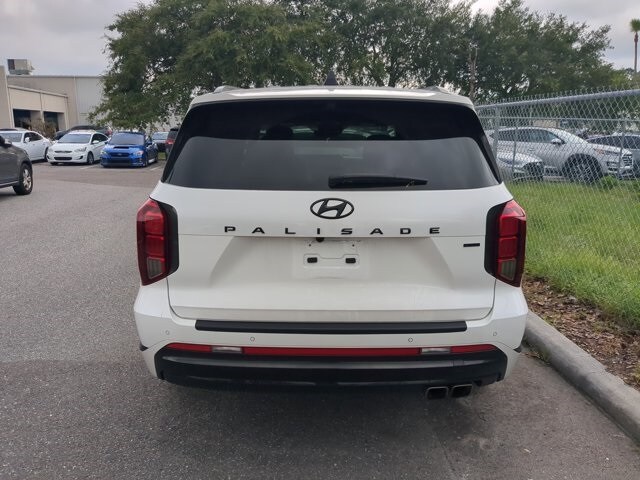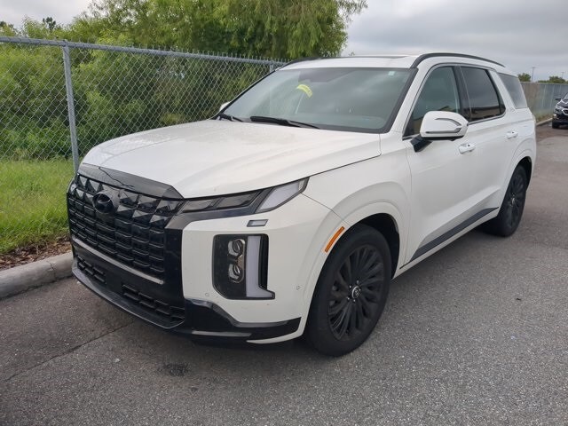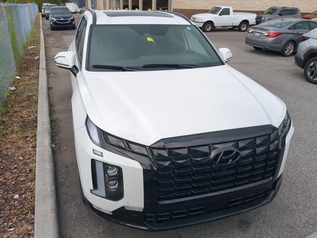 The price does not include tax, tag, license, an electronic filing fee of $449.00**, a private tag agency fee of $199.00**, and a predelivery service charge of $1199.00** **This charge represents costs and profit to the dealer for items such as inspecting, cleaning, and adjusting vehicles, as well as preparing documents related to the sale. * EPA-estimate metric: these are contingent on ideal conditions within a lab. Real-world situations such as carrying passengers or cargo, using climate control, driving style, and ambient temperatures can affect actual metrics. 19/24 City/Highway MPG CARFAX One-Owner. Hyper White 2025 Hyundai Palisade Calligraphy Night Edition AWD 8-Speed Automatic with SHIFTRONIC V6
