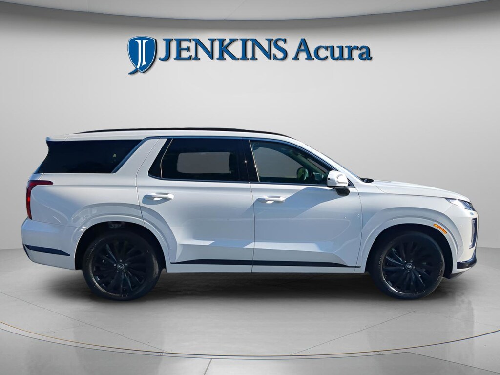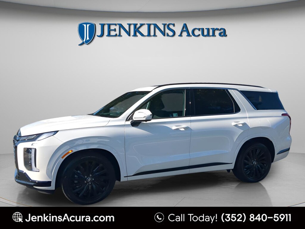 CARFAX One-Owner. This 2025 Hyundai Palisade Calligraphy Night Edition in Hyper White features Option Group 01, 12 Speakers, 3rd row seats: split-bench, 4-Wheel Disc Brakes, ABS brakes, Air Conditioning, Alloy wheels, AM/FM radio: SiriusXM, Apple CarPlay & Android Auto, Auto High-beam Headlights, Auto-dimming door mirrors, Auto-dimming Rear-View mirror, Auto-leveling suspension, Automatic temperature control, Brake assist, Bumpers: body-color, Cargo Net, Cargo Tray, Carpeted Floor Mats, Compass, Delay-off headlights, Driver door bin, Driver vanity mirror, Dual front impact airbags, Dual front side impact airbags, Electronic Stability Control, Emergency communication system, Exterior Parking Camera Rear, First Aid Kit, Four wheel independent suspension, Front anti-roll bar, Front Bucket Seats, Front Center Armrest, Front dual zone A/C, Front reading lights, Fully automatic headlights, Garage door transmitter: HomeLink, harman/kardon® Speakers, Heads-Up Display, Heated & Ventilated Front Bucket Seats, Heated door mirrors, Heated front seats, Heated rear seats, Heated steering wheel, Illuminated entry, Knee airbag, Leather steering wheel, Low tire pressure warning, Memory seat, Microfiber Suede Seat Trim, Navigation System, Occupant sensing airbag, Outside temperature display, Overhead airbag, Overhead console, Panic alarm, Passenger door bin, Passenger vanity mirror, Power door mirrors, Power driver seat, Power Liftgate, Power moonroof, Power passenger seat, Power steering, Power windows, Radio data system, Radio: AM/FM/MP3 Premium Audio System, Rain sensing wipers, Rear air conditioning, Rear anti-roll bar, Rear audio controls, Rear reading lights, Rear side impact airbag, Rear window defroster, Rear window wiper, Reclining 3rd row seat, Remote keyless entry, Roof rack, Security system, Speed control, Speed-sensing steering, Split folding rear seat, Spoiler, Steering wheel mounted audio controls, Tachometer, Telescoping steering wheel, Tilt steering wheel, Traction control, Trip computer, Turn signal indicator mirrors, Variably intermittent wipers, Ventilated front seats, Ventilated rear seats, Wheel Locks, and Wheels: 20" x 7.5J Black Liquid Paint Alloy . Visit our showroom 24/7 at Jenkinshyundaiofjacksonville or call 904-420-3100. AWD
