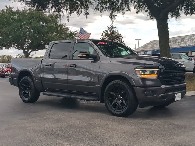 The price does not include tax, tag, license, an electronic filing fee of $449.00**, a private tag agency fee of $199.00**, and a predelivery service charge of $1199.00** **This charge represents costs and profit to the dealer for items such as inspecting, cleaning, and adjusting vehicles, as well as preparing documents related to the sale. * EPA-estimate metric: these are contingent on ideal conditions within a lab. Real-world situations such as carrying passengers or cargo, using climate control, driving style, and ambient temperatures can affect actual metrics. 15/21 City/Highway MPG TEXT OR CALL 959-333-8424 NOW TO GET IN TOUCH WITH ANIBAL RIVERA IN SALES *SE HABLA ESPAN OL*, TEXT OR CALL 352-553-9840 NOW TO GET IN TOUCH WITH BRANDON BONILLA IN SALES, #1 Seat Foam Cushion, 1-Yr SiriusXM Guardian Trial, 3 Rear Seat Head Restraints, 4 Way Front Headrests, 4G LTE Wi-Fi Hot Spot, 5-Year SiriusXM Traffic Service, 5-Year SiriusXM Travel Link Service, 8.4" Touchscreen Display, Accent Color Premium Power Mirrors, Adaptive Cruise Control w/Stop & Go, Advanced Safety Group (DISC), Apple CarPlay, Auto Dimming Exterior Passenger Mirror, Auto High Beam Headlamp Control, Auto-dimming door mirrors, Bed Utility Group, Black Exterior Truck Badging, Black Headlamp Bezels, Black Interior Accents, Black Painted Exterior Mirrors Caps, Blind Spot & Cross Path Detection, Body Color Door Handles, Body Color Front Bumper, Body Color Rear Bumper w/Step Pads, Bucket Seats, Center Console Parts Module, Disassociated Touchscreen Display, Driver Seat Memory, Dual Exhaust w/Black Tips, Foam Bottle Insert (Door Trim Panel), For Details, Visit DriveUconnect.com, For More Info, Call 800-643-2112, Front Seat Back Map Pockets, Full Length Upgraded Floor Console, Google Android Auto, GPS Antenna Input, GPS Navigation, Grille Surround 3 Black Texture 2 Black, harman/kardon 19 Speaker Premium Sound, HD Radio, Heads-Up Display, Heated Front Seats, Heated Second Row Seats, Heated Steering Wheel, Integrated Center Stack Radio, Integrated Voice Command w/Bluetooth, Lane Keep Assist, Laramie Level 2 Equipment Group (DISC), Leather Trimmed Bucket Seats, LED CHMSL Lamp, MOPAR 4 Adjustable Cargo Tie-Down Hooks, Mopar Black Tubular Side Steps, MOPAR Deployable Bed Step, MOPAR Spray In Bedliner, Night Edition, Parallel & Perp Park Assist w/Stop, ParkSense Front/Rear Park Assist w/Stop, Pedestrian Emergency Braking, Pick-Up Box Lighting, Power 4-Way Driver Lumbar Adjust, Power 4-Way Passenger Lumbar Adjust, Power 8-Way Driver & Passenger Seats, Quick Order Package 25H Laramie, Radio: Uconnect 4C Nav w/8.4" Display, Rain Sensitive Windshield Wipers, Rear 60/40 Folding Split Recline Seat, Rear Underseat Compartment Storage, Rearview Autodim Digital Display Mirror, Remote Tailgate Release, SiriusXM Radio Service, SiriusXM Satellite Radio, SiriusXM Traffic Plus, SiriusXM Travel Link, Sport Performance Hood, Surround View Camera System, Tailgate Ajar Warning Lamp, Technology Group (DISC), Trailer Brake Control, Trailer Light Check, Trailer Reverse Steering Control, Trailer Tire Pressure Monitoring System, Trailer Tow Group (DISC), USB Host Flip, Ventilated Front Seats. Granite Crystal Metallic Clearcoat 2021 Ram 1500 Laramie 4WD 8-Speed Automatic HEMI 5.7L V8 Multi Displacement VVT
