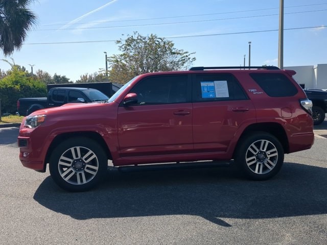 The price does not include tax, tag, license, an electronic filing fee of $449.00**, a private tag agency fee of $199.00**, and a predelivery service charge of $1199.00** **This charge represents costs and profit to the dealer for items such as inspecting, cleaning, and adjusting vehicles, as well as preparing documents related to the sale. * EPA-estimate metric: these are contingent on ideal conditions within a lab. Real-world situations such as carrying passengers or cargo, using climate control, driving style, and ambient temperatures can affect actual metrics. 16/19 City/Highway MPG ONE OWNER, 4Runner TRD Sport, 4D Sport Utility, 4.0L V6 DOHC 24V, 4WD, Red. Red 2022 Toyota 4Runner TRD Sport 4WD 5-Speed with ECT 4.0L V6 DOHC 24V