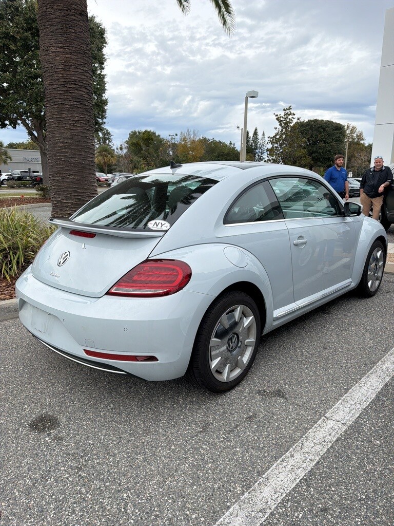 The price does not include tax, tag, license, an electronic filing fee of $449.00**, a private tag agency fee of $199.00**, and a predelivery service charge of $1199.00** **This charge represents costs and profit to the dealer for items such as inspecting, cleaning, and adjusting vehicles, as well as preparing documents related to the sale. * EPA-estimate metric: these are contingent on ideal conditions within a lab. Real-world situations such as carrying passengers or cargo, using climate control, driving style, and ambient temperatures can affect actual metrics. 26/33 City/Highway MPG One Owner!, Clean CarFax!, Beetle 2.0T SE, 2D Hatchback, 2.0L TSI, Titan Black w/V-Tex Leather, 17" 10-Spoke Alloy Wheels, Auto-dimming Rear-View mirror, Automatic temperature control, Brake assist, Delay-off headlights, Electronic Stability Control, Emergency communication system: VW Car-Net services (capabilities require enrollment or subscription), Front dual zone A/C, Fully automatic headlights, Heated Front Comfort Seats, Illuminated entry, Panic alarm, Power moonroof, Rain sensing wipers, Remote keyless entry, V-Tex Leatherette Seating Surfaces.